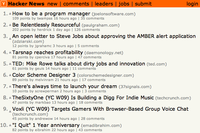 Hacker News is the brainchild of Paul Graham, so it partially reflects his interests in Y Combinator and entrepreneurial stuff like startups. Paul is serious about moderation on the site, so in addition to the typical Digg-style voting, there’s a secret cabal (I like to think of it as The Octagon, “no one will admit they still exist!”) of hand-picked editors who remove flagged posts. More importantly, the conversation on the site about the articles is quite rational, with very little noise and trolling.
