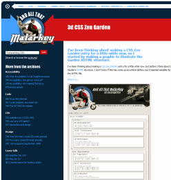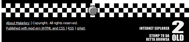 All That Malarkey, a popular CSS design website, does the same thing, but with a decidedly more tongue-in-cheek bent. Here’s a side-by-side shot of the same All That Malarkey page in IE6 and IE7: