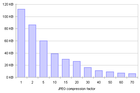 Over the years, I’ve standardized on a JPEG compression factor of 15; I find that generally provides the best compromise between image quality and file size for most photographic images.