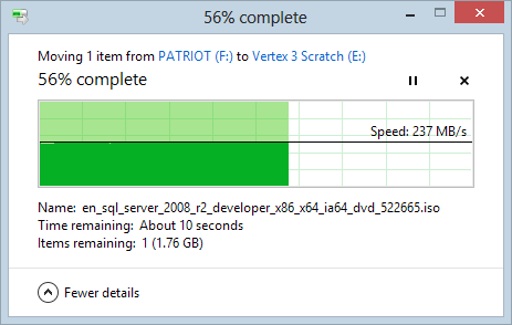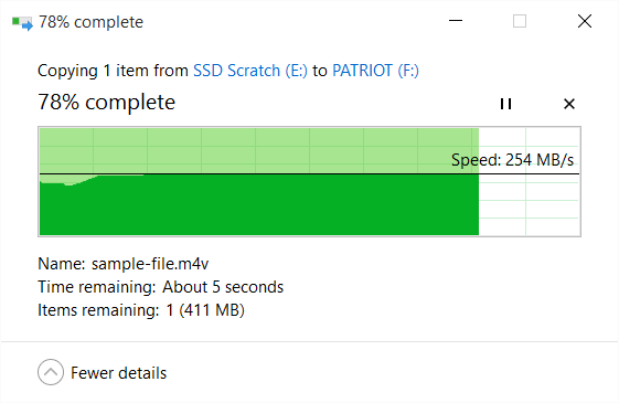 Needless to say, this thing handily saturates a USB 2.0 connection at around 27 - 30 MB/sec — but plug it into one of those blue USB 3.0 ports on newer Macs or PCs and prepare to feel like the “blown away” guy in the Maxell ad.