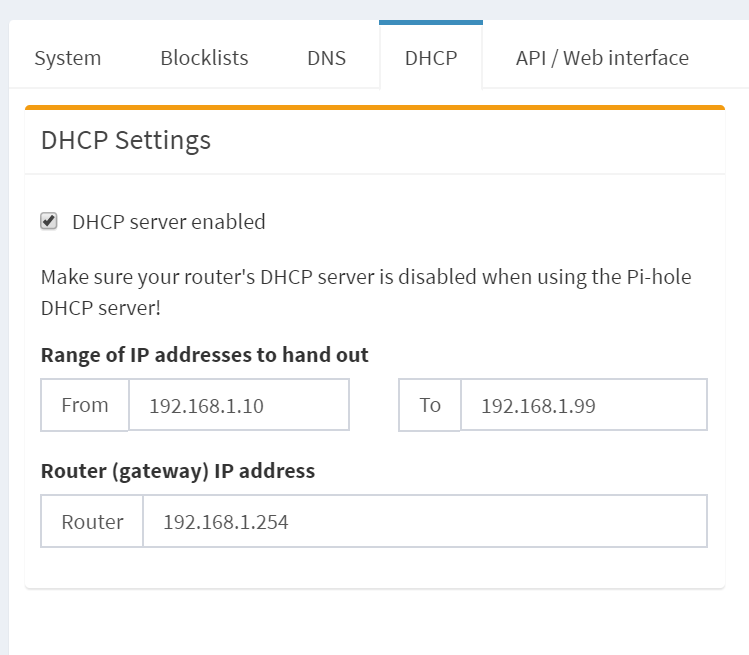 - Turn ON the pi-hole DHCP server, in the web GUI.