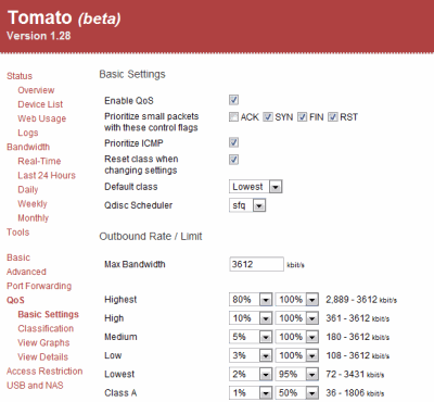 I felt a little bad about that post, because I quickly migrated from the DD-WRT open source firmware to OpenWRT and then finally settled on Tomato. I guess that's open source, too many choices with nobody to really tell you what's going to work reliably on your particular hardware. But the good news is that I've been running Tomato quite happily with total stability for about a year now – primarily because it is gloriously simple, but also because it has the most functional quality of service (QoS) implementation.