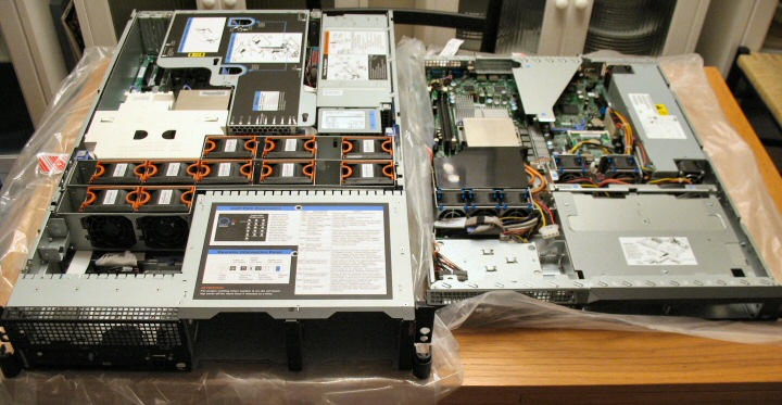 I immediately began unboxing the servers with all the eagerness of a kid unwrapping his Christmas presents. The servers are barebones, with basic levels of CPU and memory; I bought some hard drives and extra memory to have on hand for testing and installation. Configuring servers on Christmas Eve = the best geek christmas, ever!