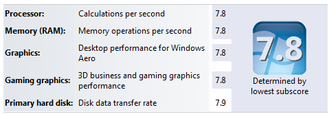 The total package with a nice SSD delivers a near-perfect Windows Experience score: