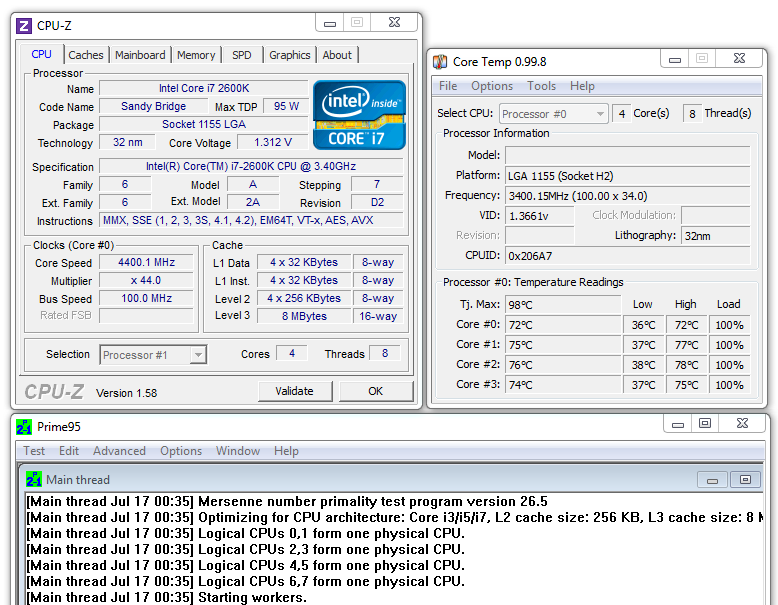 And then, of course, the overclockening. What kind of geek would I be if I didn’t attempt to turn this baby up to 11? This is another area where Sandy Bridge is a revelation: so long as you buy one of the blessed “K” series processors, overclocking is as simple as setting the multiplier to the desired value. It is ridiculously simple. And my results, for once, were immediately as good as the ones everyone else was crowing about: 4.4 GHz totally stable!