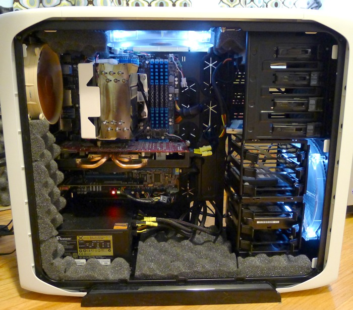 Once I had all the parts in hand, it was a simple matter of building it up, as documented in my previous post series. I adore this Corsair case; it is an absolute joy to work in. Everything in it is cleverly designed, from the rear cable routing area with rubber grommets all over the place for easily passing cables back and forth, to the tool-less 2.5" and 3.5" bays, to the super easily removable side panels. It’s like they read a giant list of all my prior complaints with every PC case I’ve ever used and fixed every. single. last. one of them.