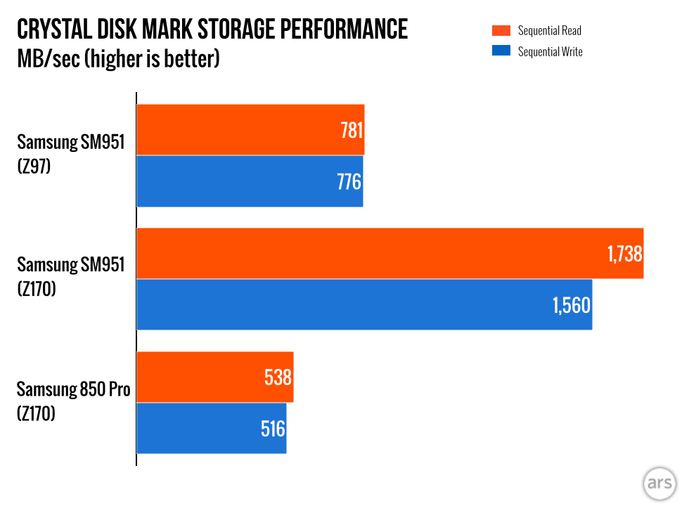 Even though the days of doubling (or even 1.5×-ing) CPU performance are long gone for PCs, there are still some key iterative performance milestones to hit. Like mainstream 4k displays, I believe mainstream PCI express SSDs are another important step in the overall evolution of desktop computing. Or its corpse, anyway.