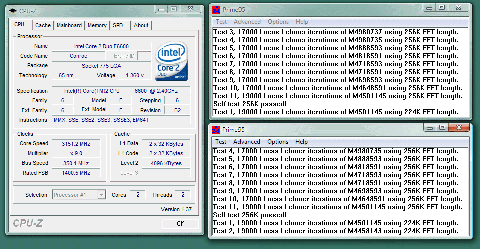 As a responsible overclocker, I also ensure the system is actually stable at these settings through hours and hours of Prime 95 torture testing. I still have those two instances of Prime95 running in the background as I'm writing this post.