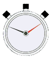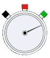 This stopwatch has three colored buttons. And no sweeping hand. The colors definitely help: red means stop, green means go. So I’m guessing black is reset.
