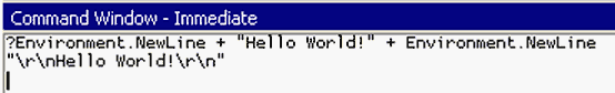 Usually VB.NET is guilty of handling things in odd and unexpected ways, but this time it’s C#. I expect newlines to appear in the immediate window as, oh, I don’t know... NEW LINES? It’s a bit difficult to read text filled with a bunch of rn notation instead of human readable whitespace. What’s worse is that even the variable tooltips in C# behave this way!