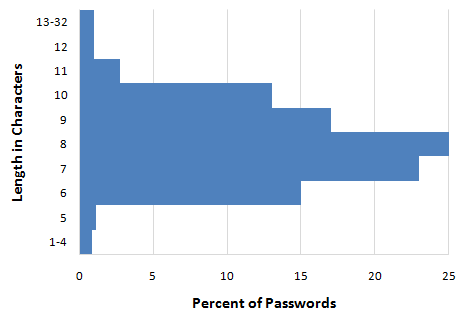 Based on this data, the average MySpace user has an 8 character alphanumeric password. Which isn’t great, but doesn’t sound too bad. That is, until you find out that 28 percent of those alphanumerics were all lowercase with a single final digit – and two-thirds of the time that final digit was 1!