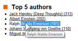 - Don't link things the user might want to select and copy. Woe upon the poor user who needs to select and copy hyperlinked text. It requires a complex ballet of very precise mouse movements to get it to work at all. Here, I'm trying to select the name "Ralph Waldo Emerson", which is part of the hyperlink. Granted, this is not a terribly common scenario – it's probably the most subtle tip on Philipp's list. But when it happens, it's awkward and unpleasant, so do give it some consideration.