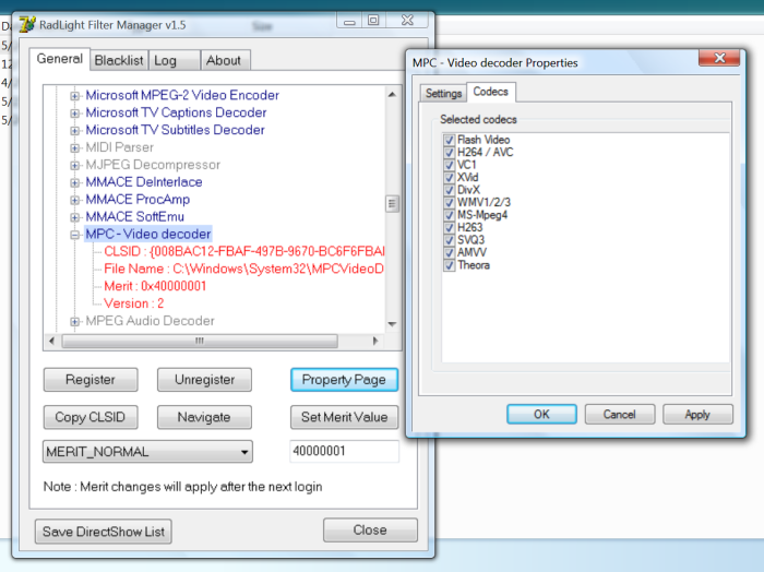 c:windowssystem32, and runregsvr32 MPCVideoDec.ax