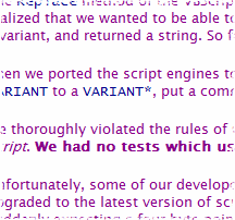 Unfortunately, every time I visit Eric's blog for yet another Fabulous Adventure in Coding, my eyes are assaulted by the unholy combination of purple and Lucida Sans Unicode: