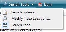 To view indexed locations, or add your own, select Modify Index Locations from the Search Tools menu. On a default Vista install, there are only three indexed locations: