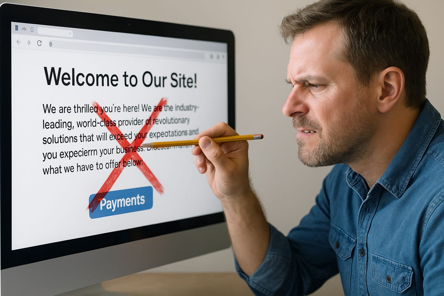 We all know happy talk when we see it: it's the introductory text that's supposed to welcome us to the site and tell us how great it is, or to tell us what we're about to see in the section we just entered.
