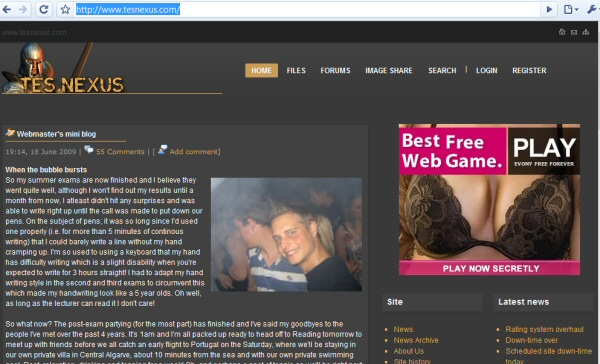 To be clear, these are real ads that were served on the internet. This is not a parody. Just to prove it, here’s a screenshot of the last ad in context at The Elder Scrolls Nexus.