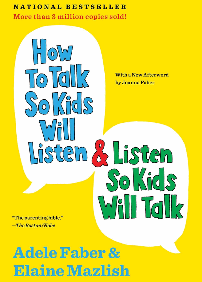 There are of course innumerable books on parenting and child-rearing, most of which I have no time to read because by the time I'm done being a parent for the day, I'm too exhausted to read more about it. And, really, who wants to read about parenting when you're living the stuff 24/7? Except on Parenting Stack Exchange, of course. However, there is one particular book I happened to discover that was shockingly helpful, even after barely ten pages in. If you ever need to deal with children aged 2 to 99, stop reading right now and go buy How to Talk So Kids Will Listen & Listen So Kids Will Talk.