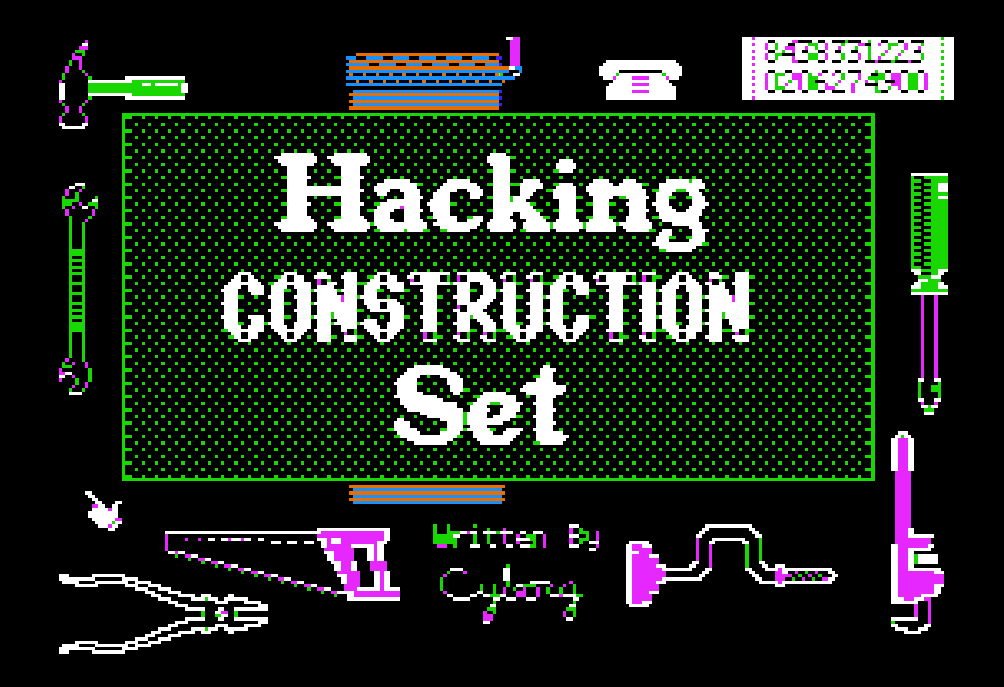 I never knew if anyone else ever used my little program to dial for calling codes. It certainly worked for me, and I tried my level best to make it work for all the possible dialing situations I could think of. It even had an intro screen with music and graphics of my own creation. But searching now, for the first time in 24 years, I found my old Hacking Construction Set disk image on an Apple ROM site.