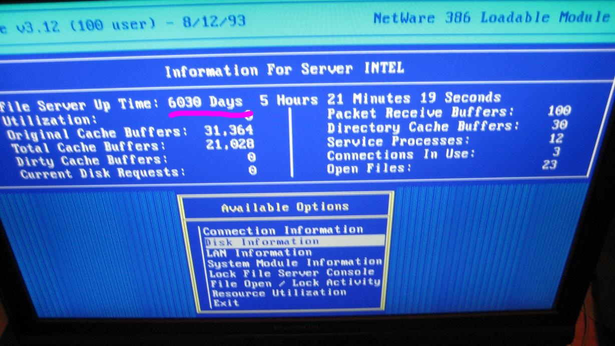 Who knows, with a bit of luck maybe you’ll end up like the guy whose netware server had sixteen years of uptime before it was decommissioned.