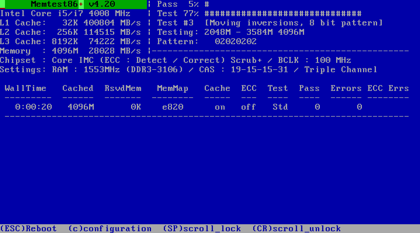 I like to start with memory tests, since those require bootable media and work the same on all x86 computers, even before you have an operating system. Memtest86 is the granddaddy of all memory testers. I’m not totally clear what caused the split between that and Memtest86+, but all of them work similarly. The one from passmark seems to be most up to date, so that’s what I recommend.
