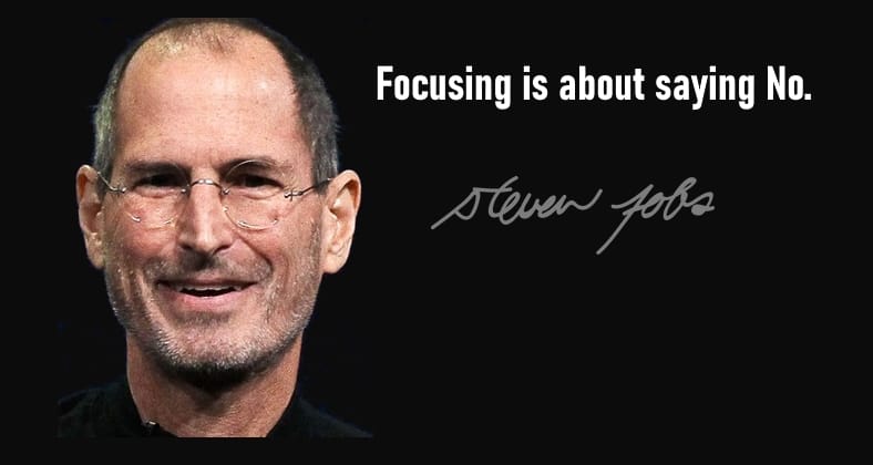 In June of 2003, Steve Jobs gave a small private presentation about the iTunes Music Store to some independent record label people. My favorite line of the day was when people kept raising their hand saying, "Does it do (x)?", "Do you plan to add (y)?". Finally Jobs said, "Wait wait - put your hands down. Listen: I know you have a thousand ideas for all the cool features iTunes could have. So do we. But we don't want a thousand features. That would be ugly. Innovation is not about saying yes to everything. It's about saying NO to all but the most crucial features."