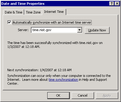 I haven’t even touched on the tricky issue of synchronizing events between PCs, each of which will have their own idea of what time it is, and how fast time is advancing. This can lead to some problems, as noted in the NIST document Configuring Windows 2000 and Windows XP to use NIST TIme Servers (pdf):