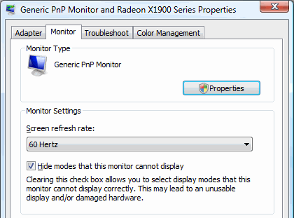 - Set your monitor’s refresh rate to 60 Hertz.