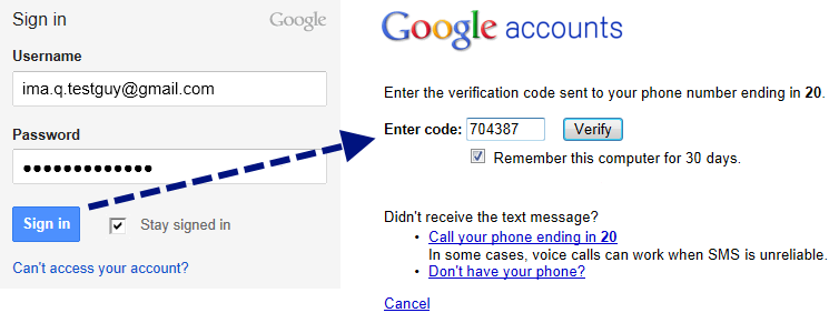 Once this is enabled, accessing your email always requires the password, and a code delivered via your cell phone. (You can check the “remember me for 30 days on this device” checkbox so you don’t have to do this every time.) With this in place, even if they discover your super sekrit email password, would-be hackers can’t do anything useful with it! To access your email, they’d need to somehow gain control of your cell phone, too. I can’t see that happening unless you’re in some sort of hostage situation, and at that point I think email security is the least of your problems.