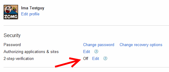 On the account settings page, click “edit” next to 2-step verification and turn it on.