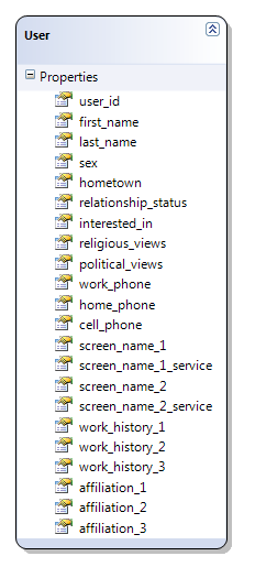 Dare Obasanjo had an excellent post When Not to Normalize your SQL Database wherein he helpfully provides a sample database schema for a generic social networking site. Here’s what it would look like if we designed it in the accepted normalized fashion: