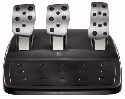 The premium leather-and-metal (well, mostly) G25 kit includes some fairly esoteric features from a major brand vendor like Logitech, notably a clutch pedal and full shifter kit.