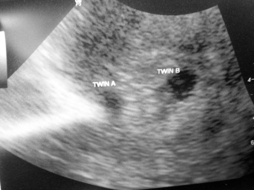 Turns out, we're having two babies. Both are girls, due in mid-February 2012.