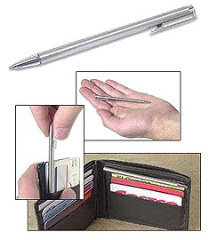 The wallet pen is quite a bit more expensive at $40 $70. But it’s made of sterling silver, and most importantly, it’s only 3" and even thinner. So it’s even more portable.
