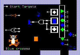 Rocky's Boots is an electronic construction set. In the program, Rocky, a boot-wearing raccoon, teaches children to build animated logic machines. Users build arbitrary logic circuits and use them to program robots in the context of an adventure game. The object of this game is to score points by making a machine to kick object targets out of a trough. The machines are composed of circuit parts that direct the flow of electricity. They are built by moving the cursor around the screen, picking up parts and hooking them together. The object targets vary in shape and color and the player must connect logic gates in such a matter that only the objects of a desired shape or color are kicked when they pass through sensors.