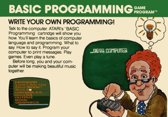 I can also attribute my career in software development to arcade games. Like many software developers, my introduction to programming was my Dad telling me if I wanted to play video games at home, I had to write them first. Tough love hurts. Home game consoles were the gateway drug of choice for parents who imagined their children as young programmers, a sneaky way for parents to trick their lazy game-playing kids into learning BASIC. And who can forget the more obvious mutant crossovers, like the Atari 2600 BASIC Programming cartridge?