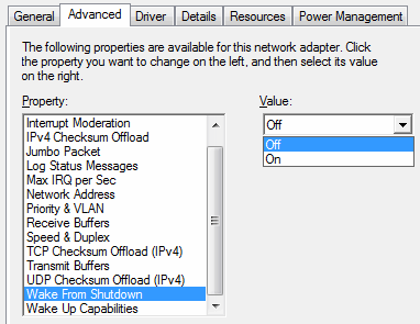 Armed with that information, I gave it a shot. But nothing happened. Zzzzz. Darn! I checked the PC’s BIOS settings, but there was nothing relevant. And then I remembered the properties page for the network adapter in Device Manager: