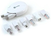 Finally, I love retractable cables, such as these Zip-Linq models. I carry a complete set: RJ-45, RJ-11, Firewire, USB B, USB A. If you don’t plan to use them all at once, ThinkGeek has a neat multi-adapter retractable cable set, so there’s even less to carry – just put the right adapter on each end.