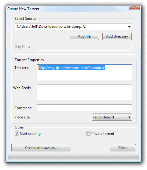 - That’s it! Click Create and save the new *.torrent file you’ve created.
