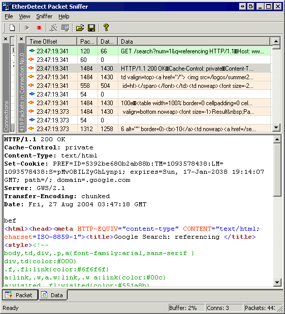 I've occasionally used network sniffers in the past, but with the rise of REST, XML, SOAP and .NET Remoting in the last year, sniffing has become an essential part of my development toolkit. I've evaluated a bunch of network sniffers, including the excellent open-source Ethereal, but the one I keep coming back to is Etherdetect:
