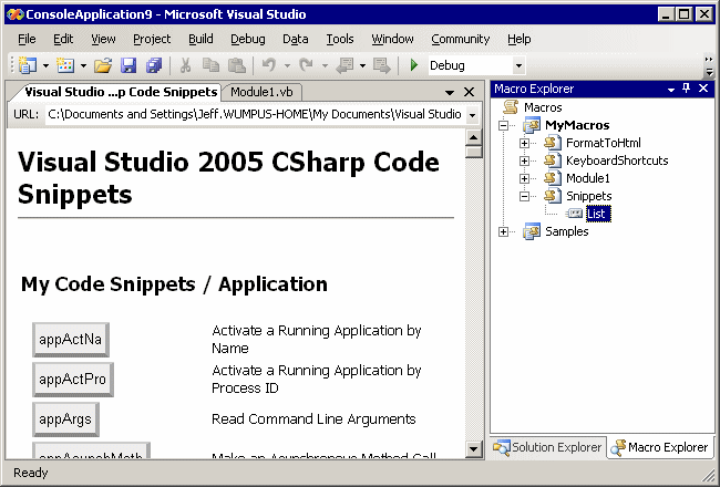 This macro only works in Visual Studio 2005, obviously. Here’s how to run it: