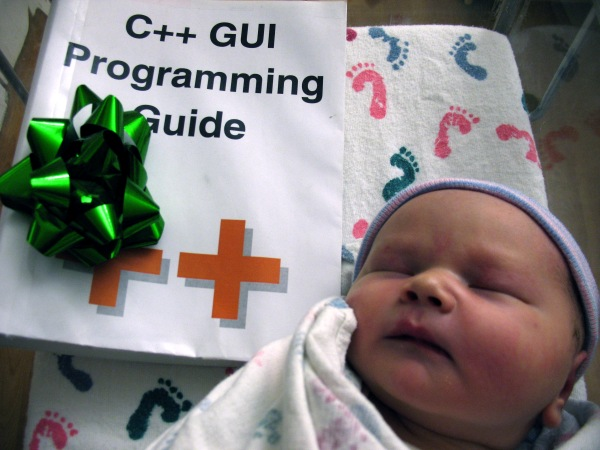 Because, truly, what better gift is there for a newborn than the C++ GUI Programming Guide? Watch the ad to see what I mean. “I’ve been eyeing that myself.”