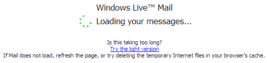 Dare uses Yahoo! Mail as an example, but I've experienced similarly long load times for the new Hotmail beta, too. The load times can be so long that a combination disclaimer/escape hatch appears below the loading animation: