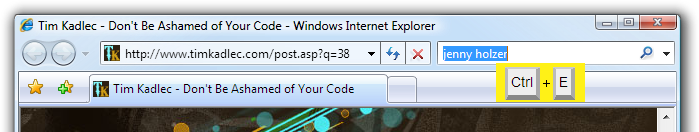 - Ctrl+E to navigate to the browser search box