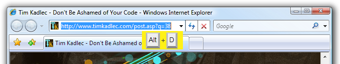 - Alt+D to navigate to the browser address bar