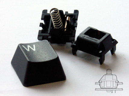 Mechanical switches look, well, mechanical. They're spiritually the same as those old-school arcade buttons we used to mash on in the 1980s. You push down on the key, and the switch physically actuates.