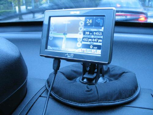 This clever little add-on converts your default suction mount into a super flexible go-anywhere dashboard mount. Taking the GPS along in any vehicle becomes a no brainer. Just lay it anywhere on the dash, plug it into the cigarette lighter port for power, and off you go. It's rock solid.
