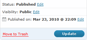 Here, the common Update operation is large and obviously a button – it's easy to see and easy to click on. The less common Move to Trash operation is smaller, presented as a vanilla hyperlink, and placed well away from Update.