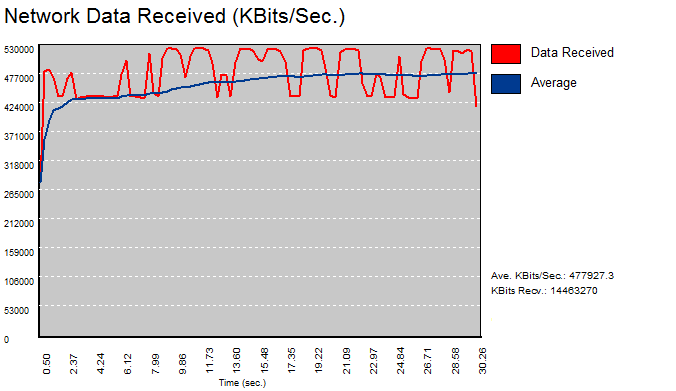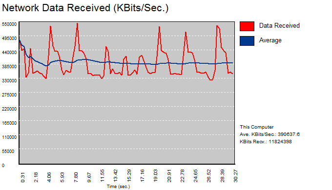 This confirms what I saw with the file copy. With jumbo frames enabled, we go from 390,638 kilobits/sec to 477,927 kilobits/sec average. A solid 20% improvement.