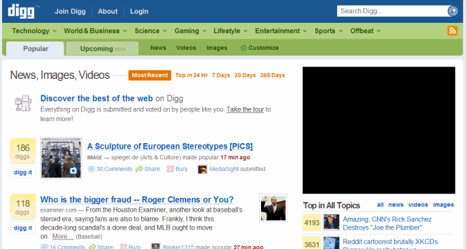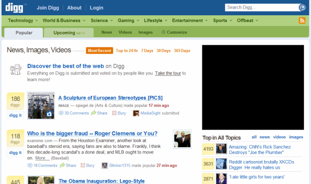 To prove that full page zoom scales like nobody’s business, here’s a screenshot I captured of the Digg homepage scaled to fit the entire width of my 1920 x 1080 monitor. In comparison, increasing the fonts beyond +2 results in a jumbled, unreadable mess.